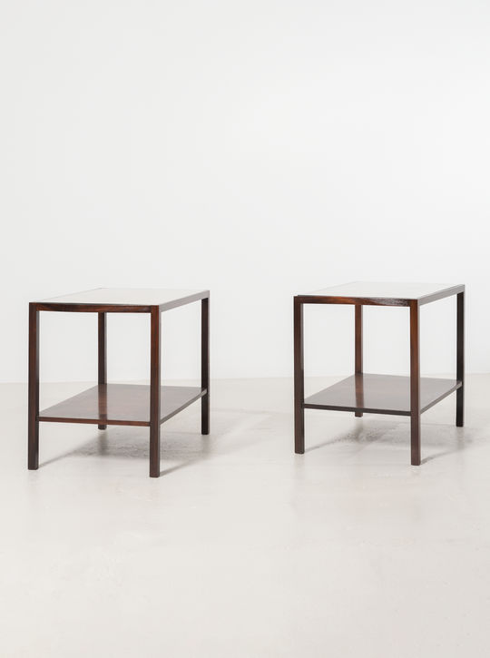Joaquim Tenreiro is the ultimate founding father of Brazilian furniture and design. Born in Portugal, he became a woodworker and moved to Brazil at the age of 22. After working in several woodworking studios in downtown Rio de Janeiro, designing and making all types of furniture, he went on to work for Laubisch-Hirth, a major furniture factory specializing in interior decoration by home architects, where he continued his eclectic training.